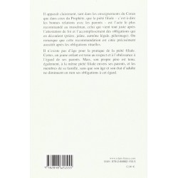 On trouve, dans le coran, la gratitude envers Dieu liée à la gratitude envers les parents "Sois reconnaissant envers moi et envers tes parents" (Coran 31/13) l'une n'allant pas sans l'autre. De même, le Prophète a fait suivre, en terme de gravité, la désobéissance aux parents tout de suite après l'associationnisme, al-Chirk, décrit comme le plus grand des péchés. Cela suffit à nous faire prendre conscience de l'importance du sujet traité (La piété filiale) en détail, dans la première partie de ce livre . L'auteur aborde ensuite dans la seconde partie, les devoirs qui incombent aux parents, de par leur fonction, envers leurs enfants.
